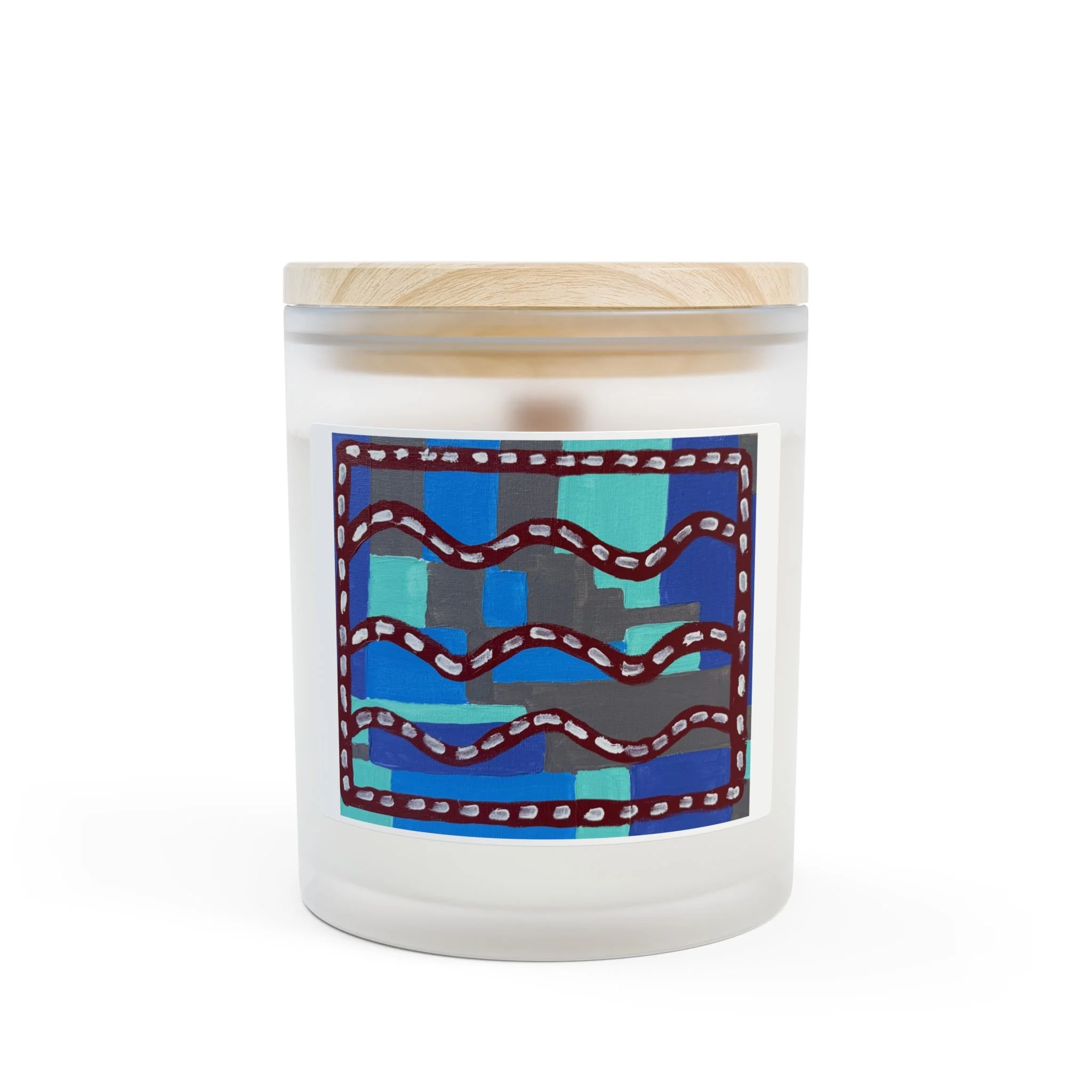 .: Frosted glass vessel with raw maple lid